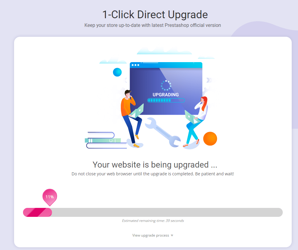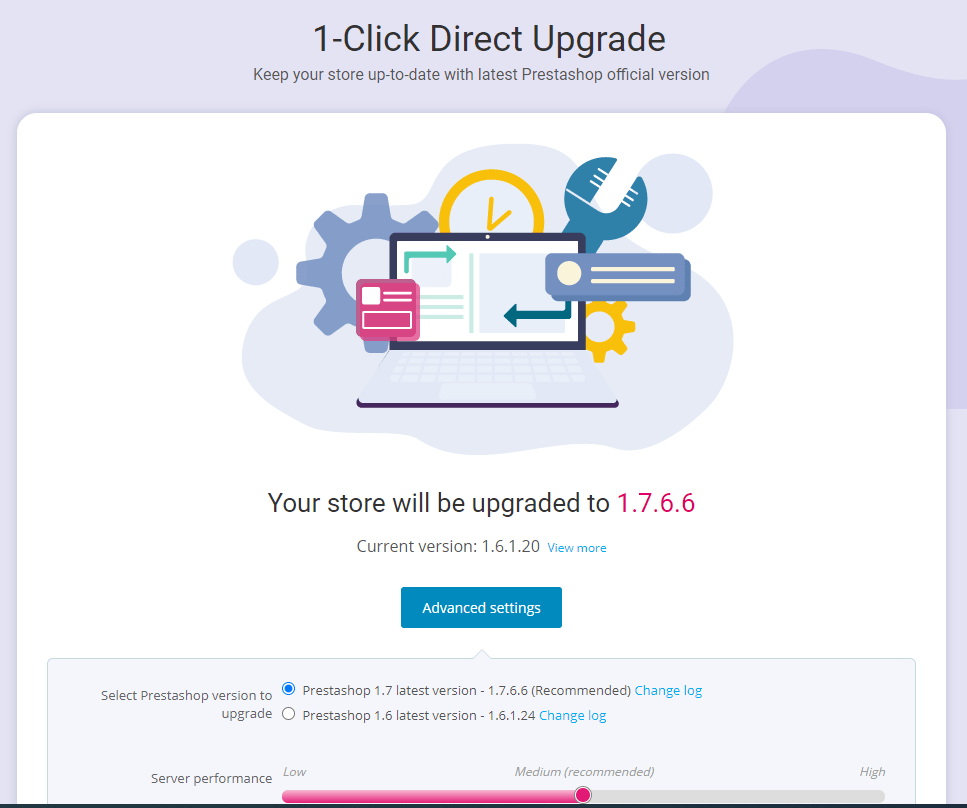 latest PrestaShop version available. Click on “Upgrade now” button.